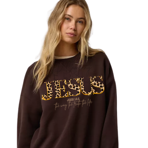 Christian Jesus Shirt, Cheetah Print Gold Bible Verse Sweatshirt, Trendy Faith Apparel Gift, Jesus Loves You, The Way The Truth The Life